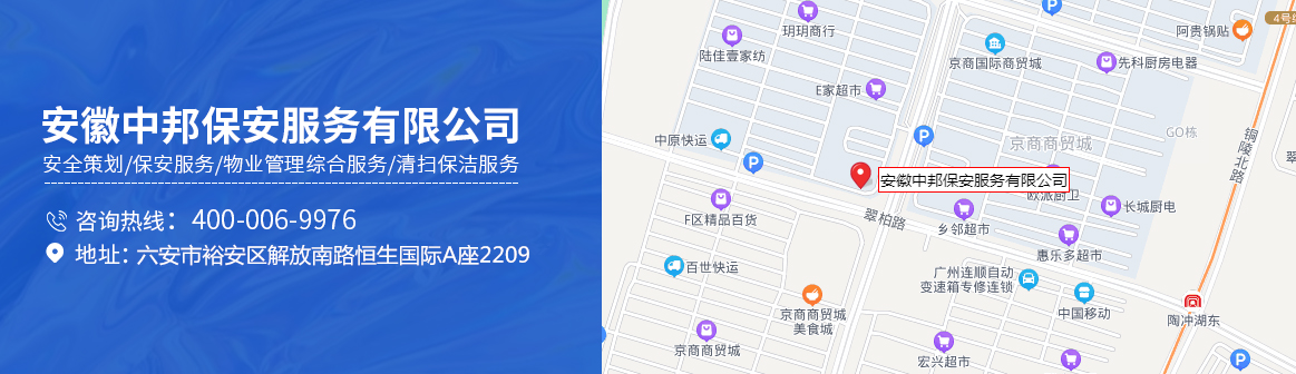 中邦服務(wù)簡介 安徽中邦保安服務(wù)有限公司總公司成立于2019年。公司 成立以來,始終以“文明值勤、優(yōu)良服務(wù)、客戶至上、安全為先” 為宗旨,以保一方平安為已任,面向社會各界等提供有償保安護 衛(wèi)、技術(shù)防范、保安培訓(xùn),是一家專業(yè)化保安服務(wù)公司。目前, 公司下為200多家客戶單位提供周到安全的保安服務(wù),遍布全省 及周邊地區(qū),現(xiàn)有各類專業(yè)人員和保安員2000余名。 中邦服務(wù)宗旨 安徽中邦保安服務(wù)有限公司是為適...